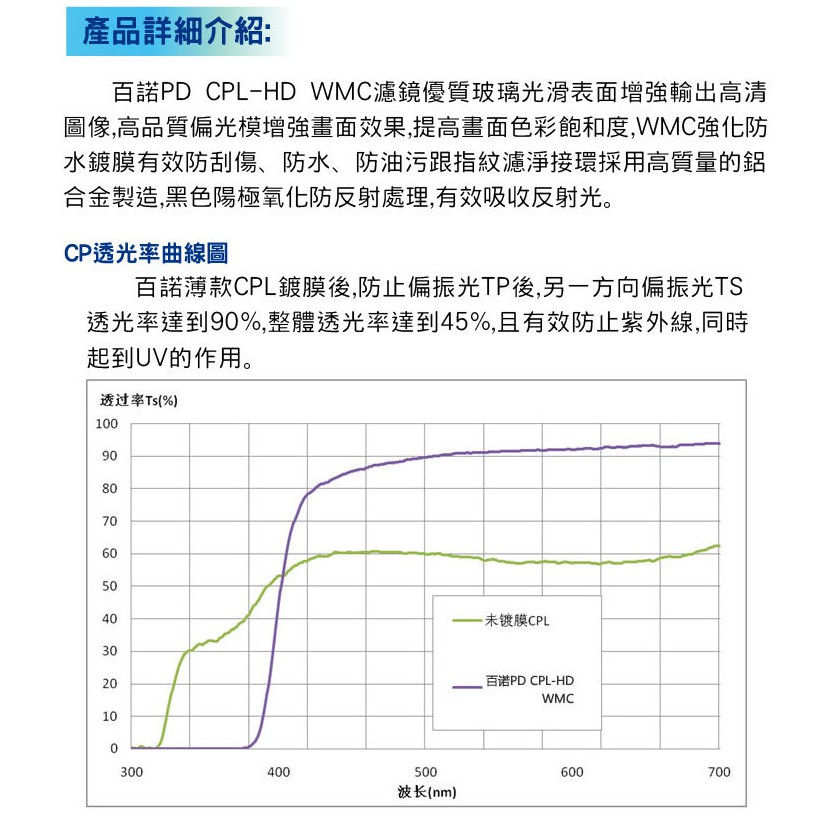 BENRO百諾 62mm PD CPL-HD WMC 偏光鏡