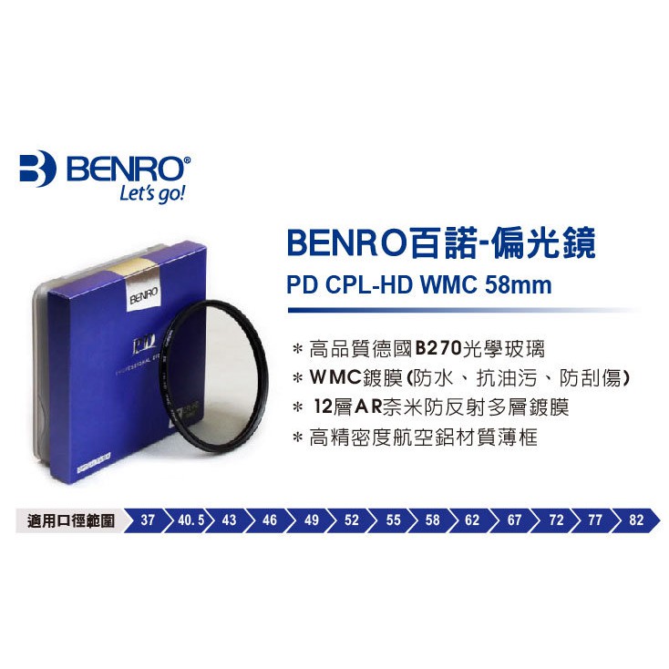 BENRO百諾 58mm PD CPL-HD WMC 偏光鏡