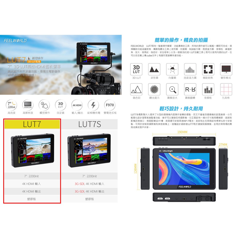 FEELWORLD富威德 LUT7 4K專業攝影監視螢幕(7吋)