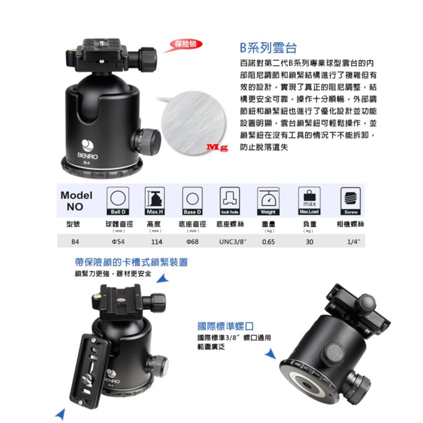 BENRO百諾 B4 球型雲台 (負重30公斤)