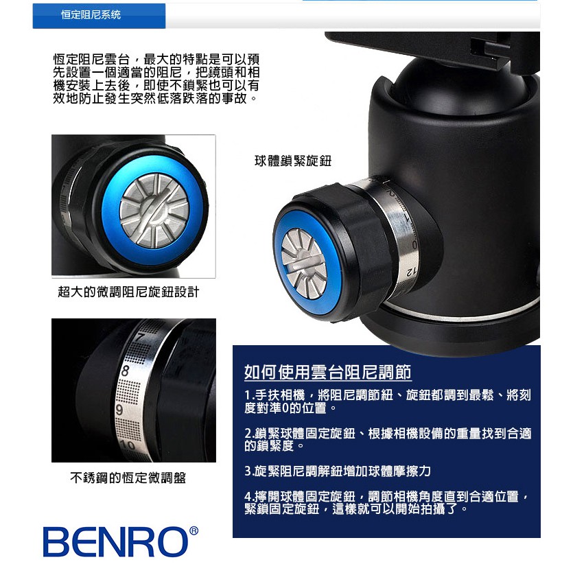 BENRO百諾 V0 恆定(記憶)阻尼球型雲台