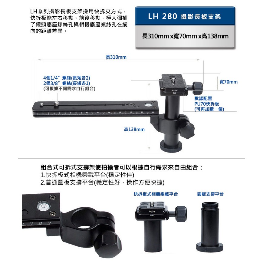 BENRO百諾 鏡頭長板支架 LH-280(LH280)