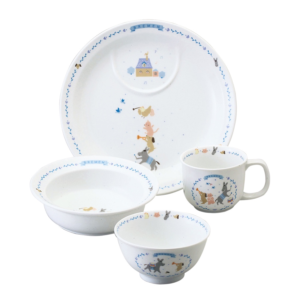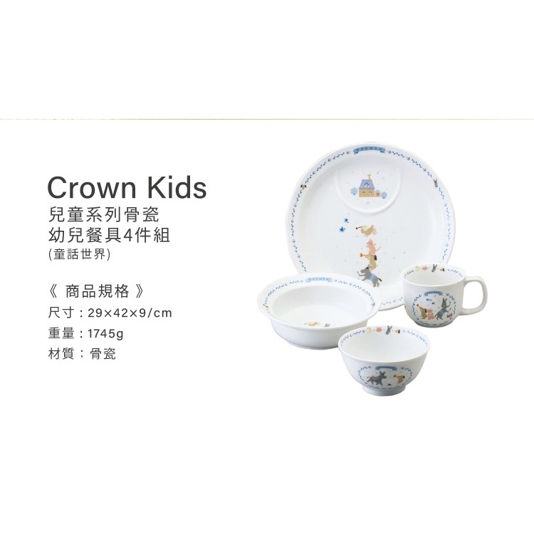 【 NARUMI日本鳴海骨瓷】Crown Kids 幼兒餐具4件組(童話世界) 彌月禮盒 送禮首選