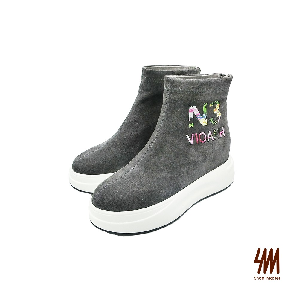 SM專櫃女鞋 獨特N3字母內刷毛厚底彈力暖心毛靴(灰色)