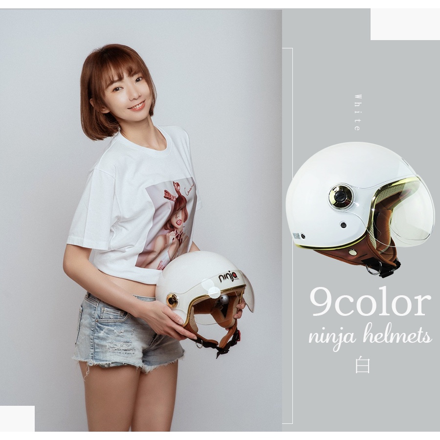 華泰 安全帽 K-808A 素色 白 金緻風 飛行帽 K808A 半罩 全拆洗 金色邊框 透氣 輕量 涼感《比帽王》