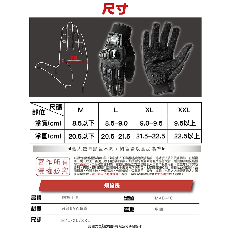 MADBIKE 防摔手套 MAD-10 紅 防摔 透氣 耐磨 輕盈 手套《比帽王》