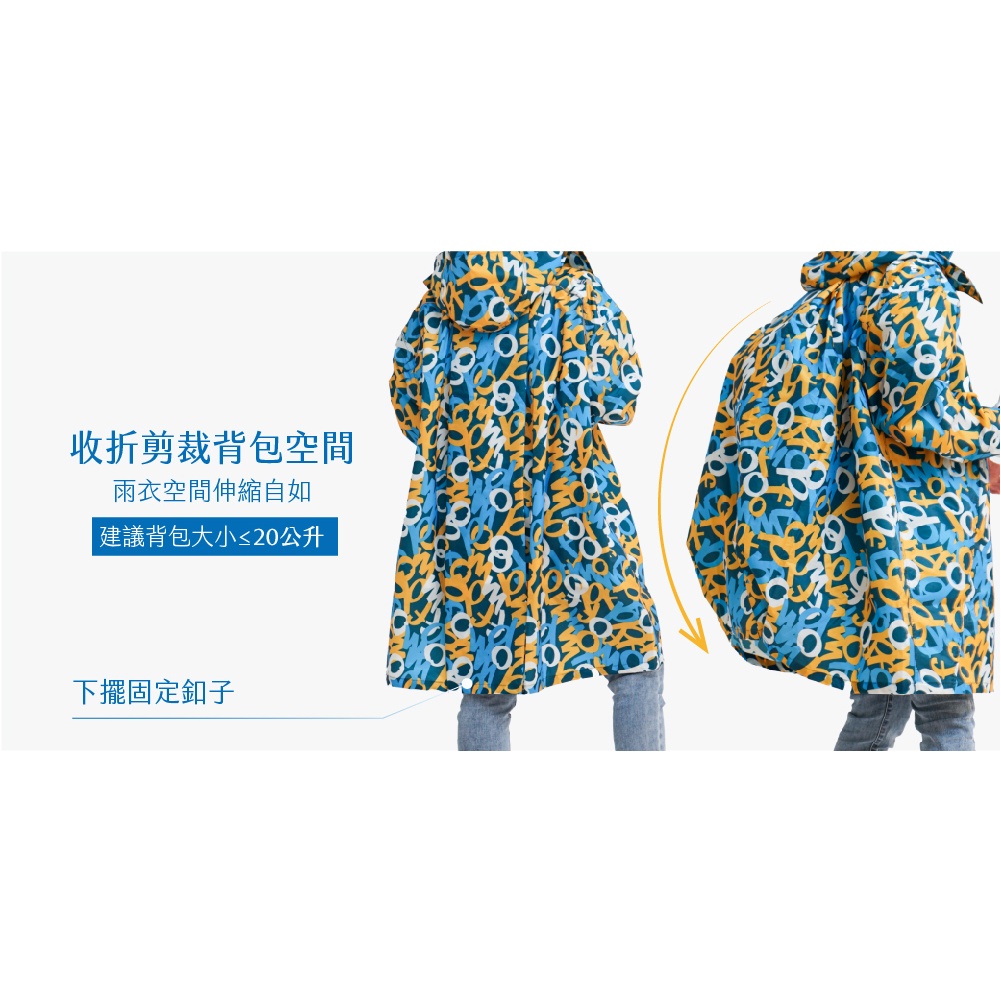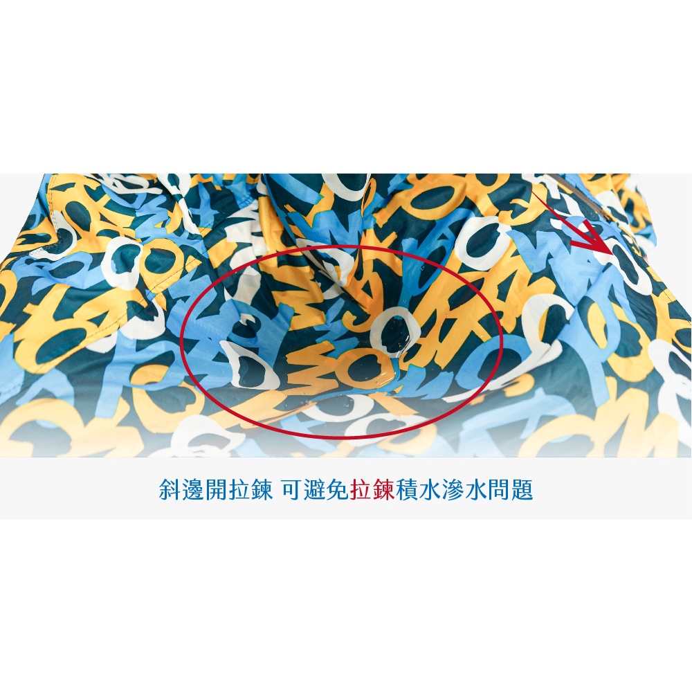 Outperform 去去雨水走長版風雨衣-塗鴉迷彩 綠底 專利雙拉鍊 斜開拉鍊 背包款 一件式 連身式 雨衣《比帽王》