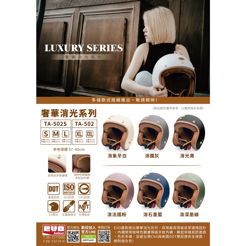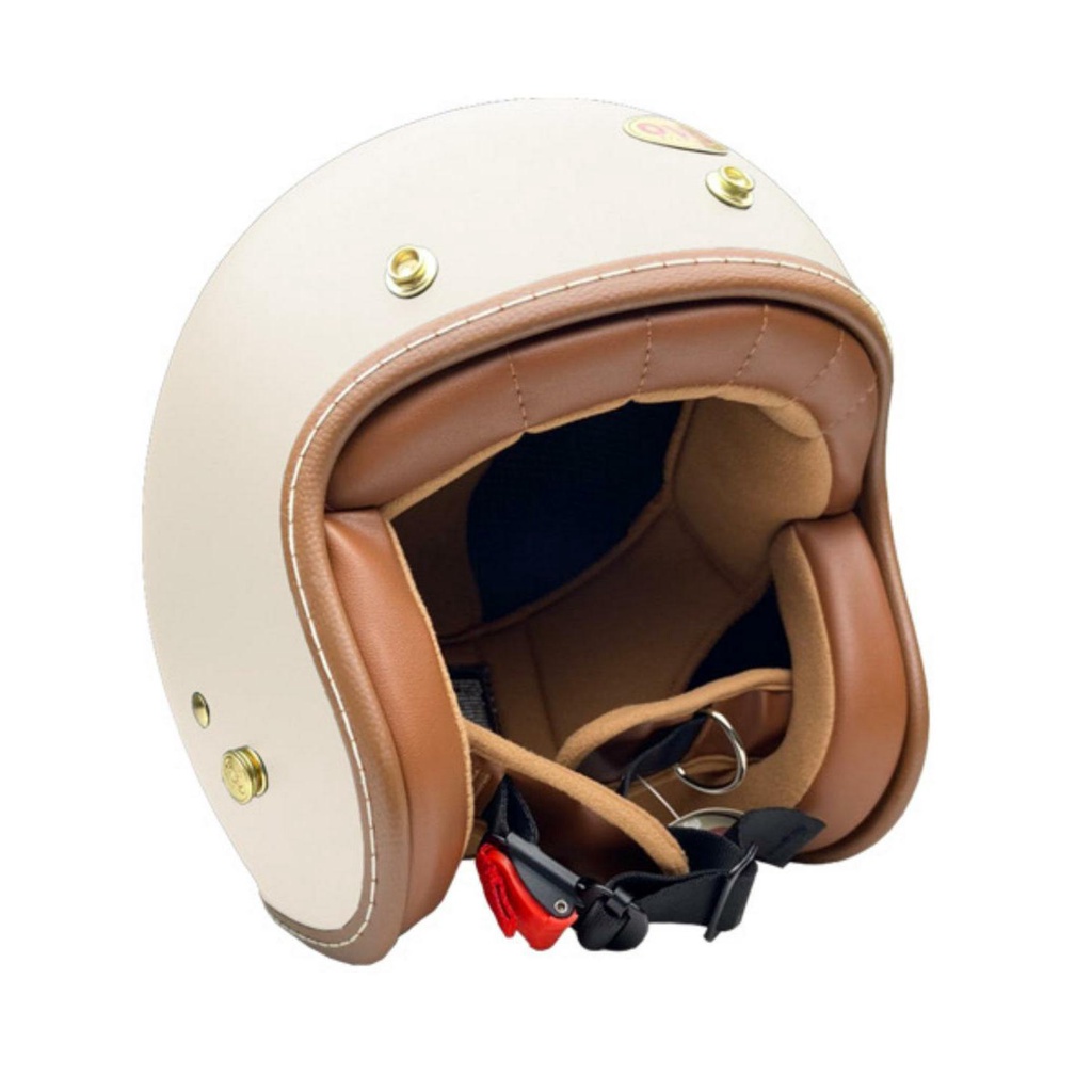 EVO 安全帽 TA502 TA502S LUXURIOUS奢華 消象牙白 車縫線邊條 金屬齒排釦 全可拆 半罩 安全帽