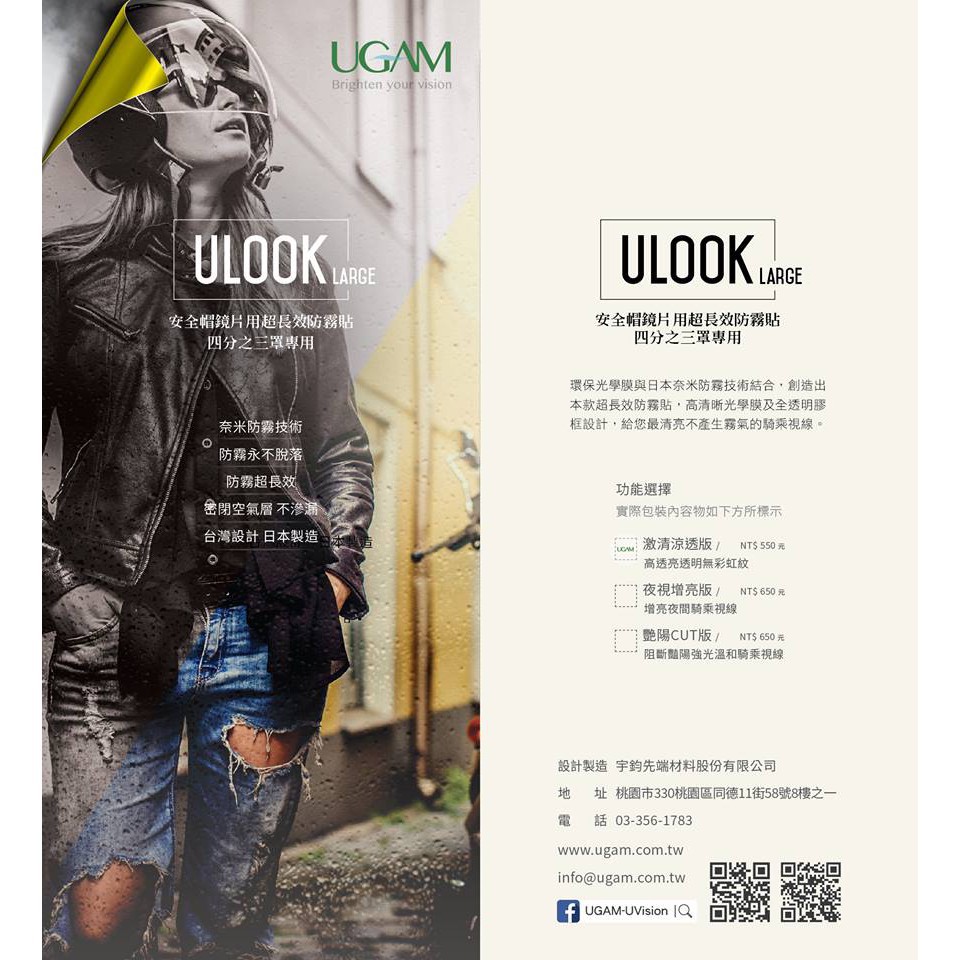 日本 UGAM ULOOK 防霧貼片 防霧貼 防霧片 安全帽 鏡片 不留殘膠 防眩光 透明 3/4罩《比帽王》