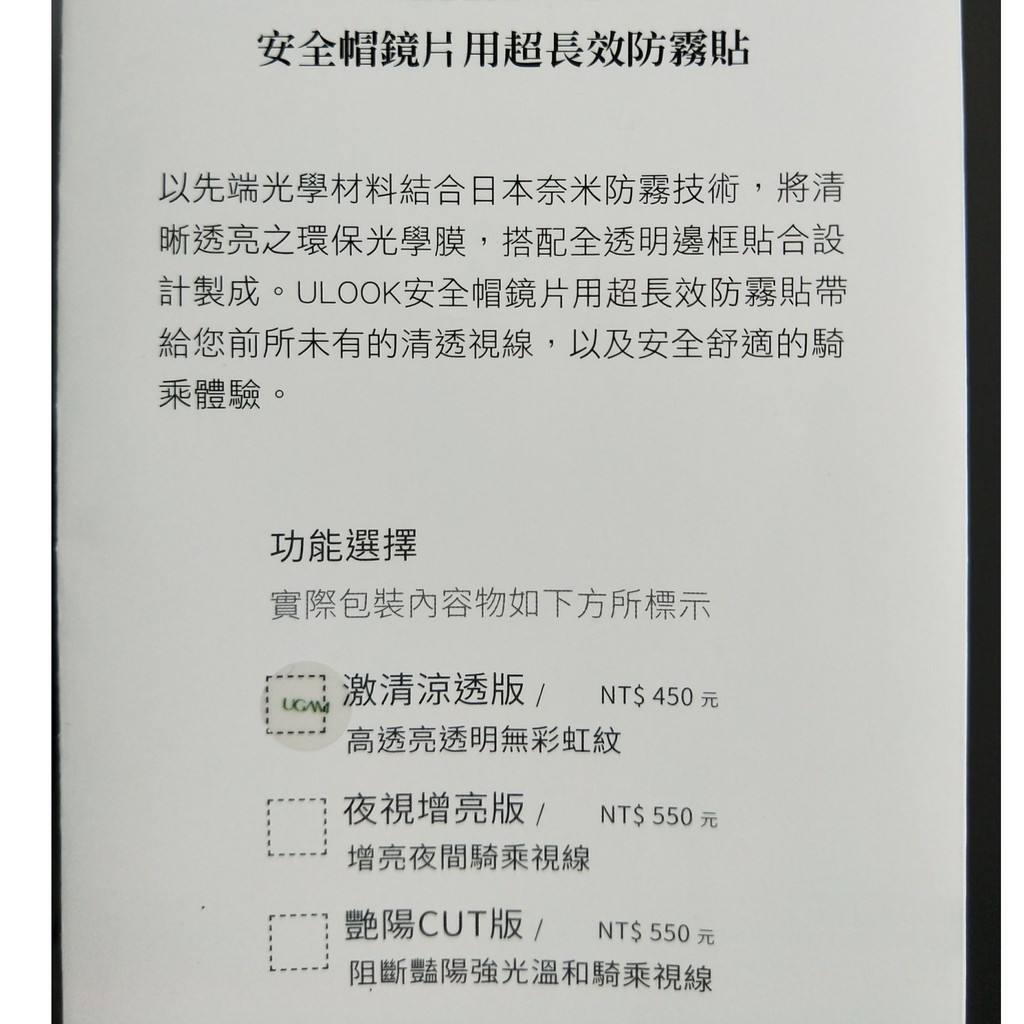 日本 UGAM ULOOK 防霧貼片 防霧貼 防霧片 安全帽 鏡片 不留殘膠 防眩光 透明 全罩式《比帽王》