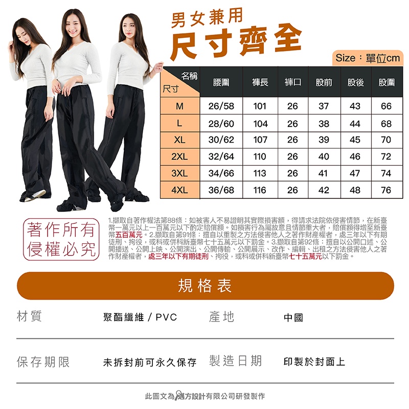 YW-R117 3D側開立體雨褲 黑色拉鍊 附隱藏式鞋套 雨褲 防水