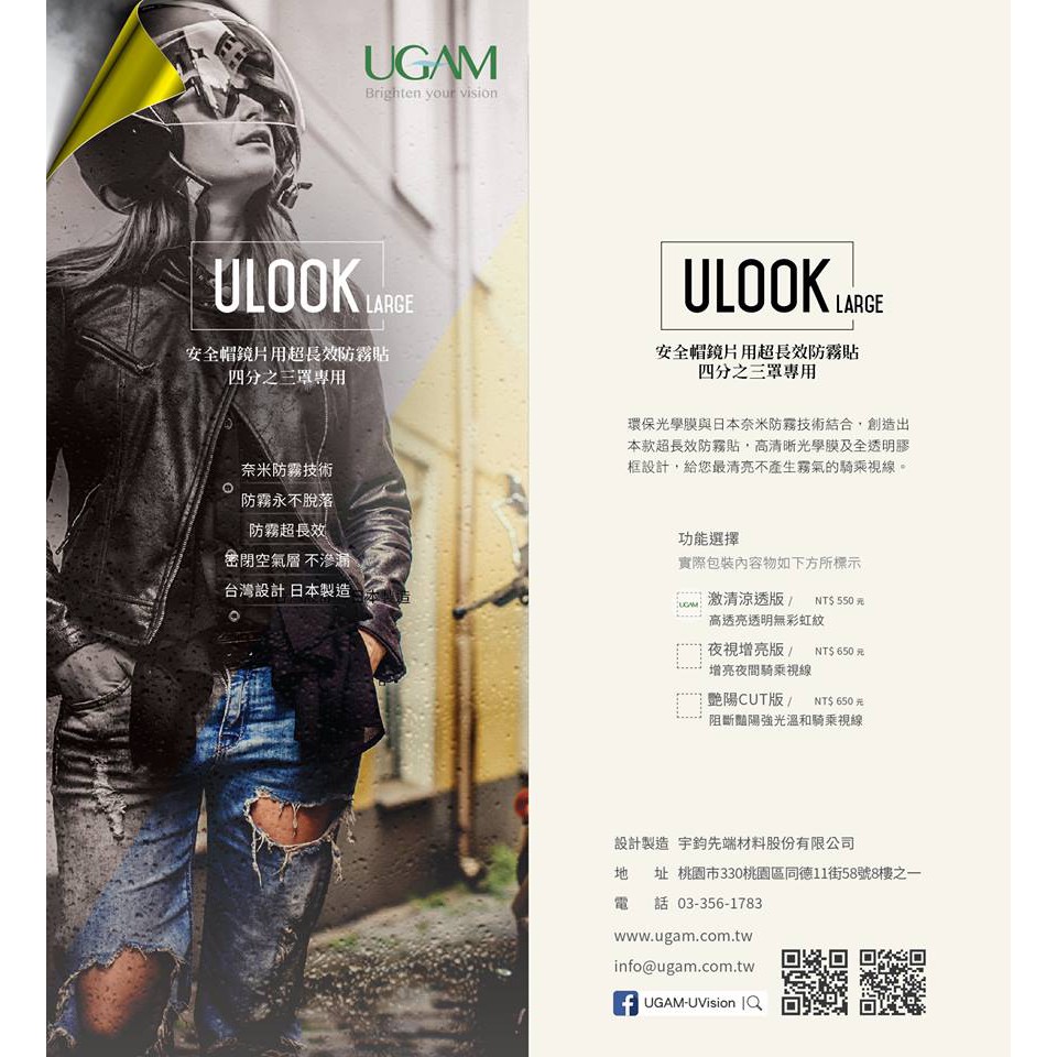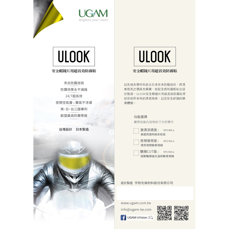 日本 UGAM ULOOK 防霧貼片 透明 防霧貼 防霧片 不留殘膠 全罩式 安全帽