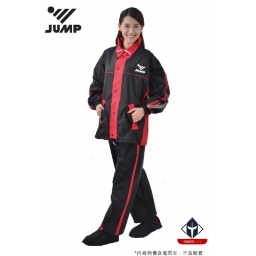 JUMP 雅仕二代 JP 0666A 黑紅 兩件式風雨衣 網狀內裡 附收納袋 騎士雨衣 反光條設計《比帽王》