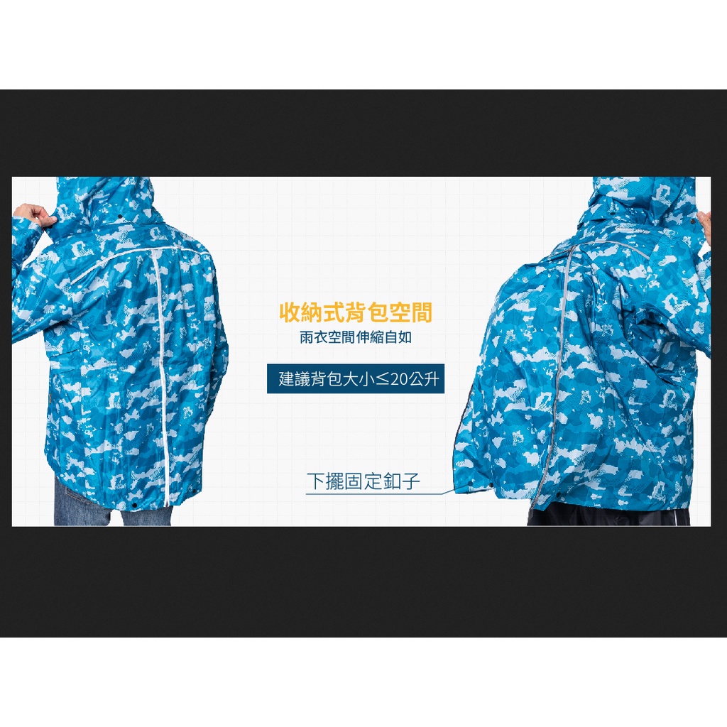奧德蒙 Outperform 去去雨水走背包款斜開雙拉鍊兩件式 藍迷彩 斜開拉鍊 雙拉鍊 雨衣 兩件式《比帽王》