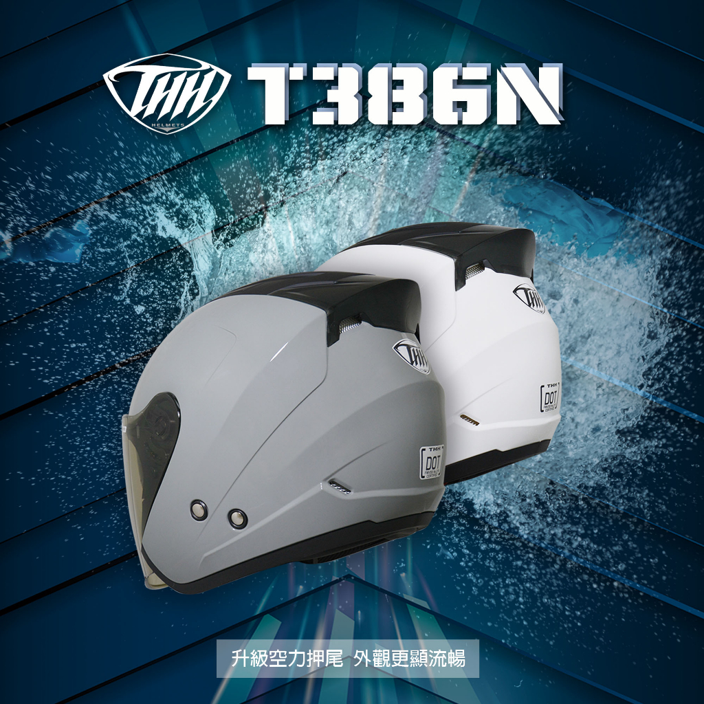 THH 安全帽 T386N 素色 水泥灰 內墨鏡 金屬排齒扣 抗UV400 耳機曹 半罩