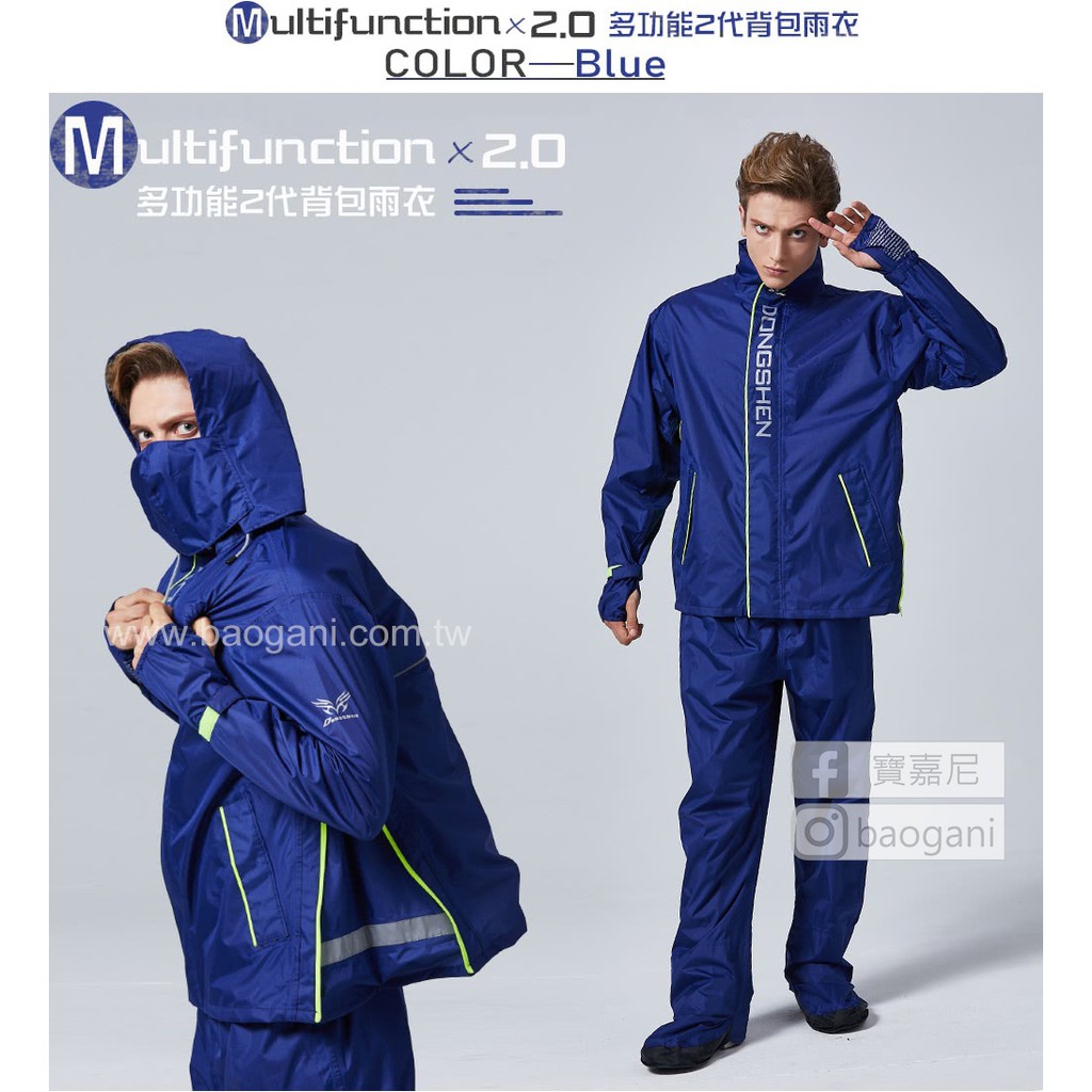 東伸 DongShen 7-2 多功能2代 外套雨衣 深藍 兩件式雨衣 防水鞋套 手套 側邊加寬 加大 背包雨衣 雙袖口