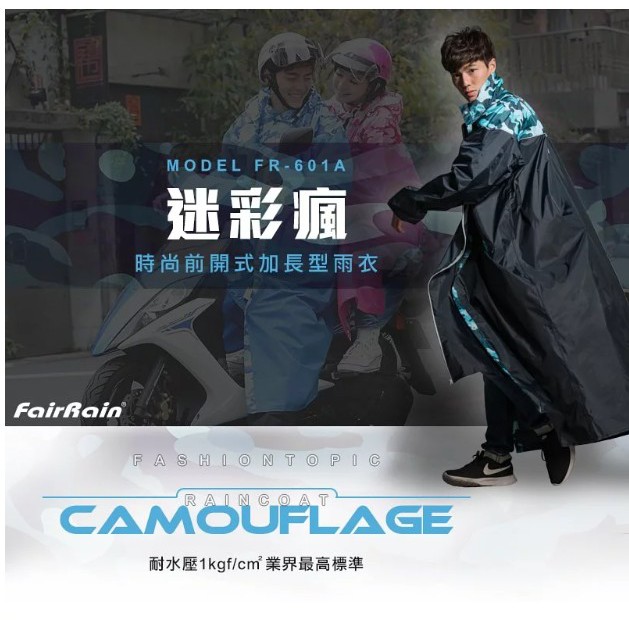 FairRain 雨衣 飛銳 迷彩瘋時尚前開加長型雨衣 瘋迷綠 加長型 一件式雨衣 連身 雨衣