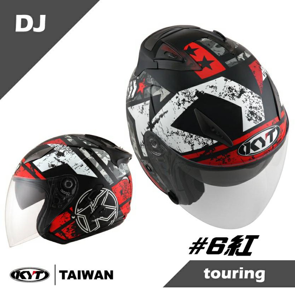 KYT 安全帽 DJ 6 紅 內置墨鏡 半罩 3/4 雙鏡片 抗UV 內襯全可拆洗《比帽王》