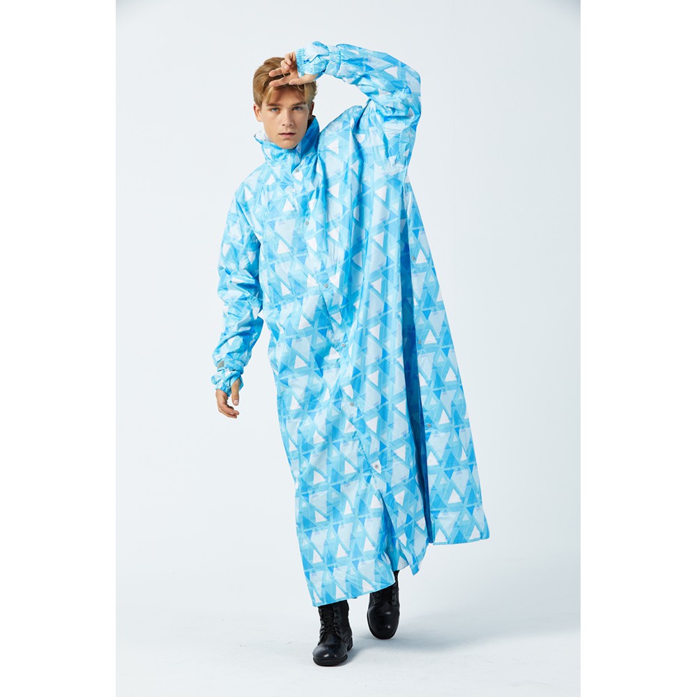 東伸 DongShen 19-3 戀戀三角 大衣式雨衣 藍白 一件式雨衣 加長袖口 側邊加寬 加大 圖案 口罩設計