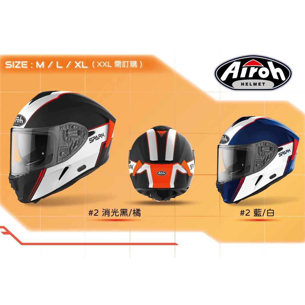 AIROH SPARK 安全帽 2 消光黑橘 全罩 安全帽 內墨片 輕量 通風 快拆鏡片 義大利品牌《比帽王》