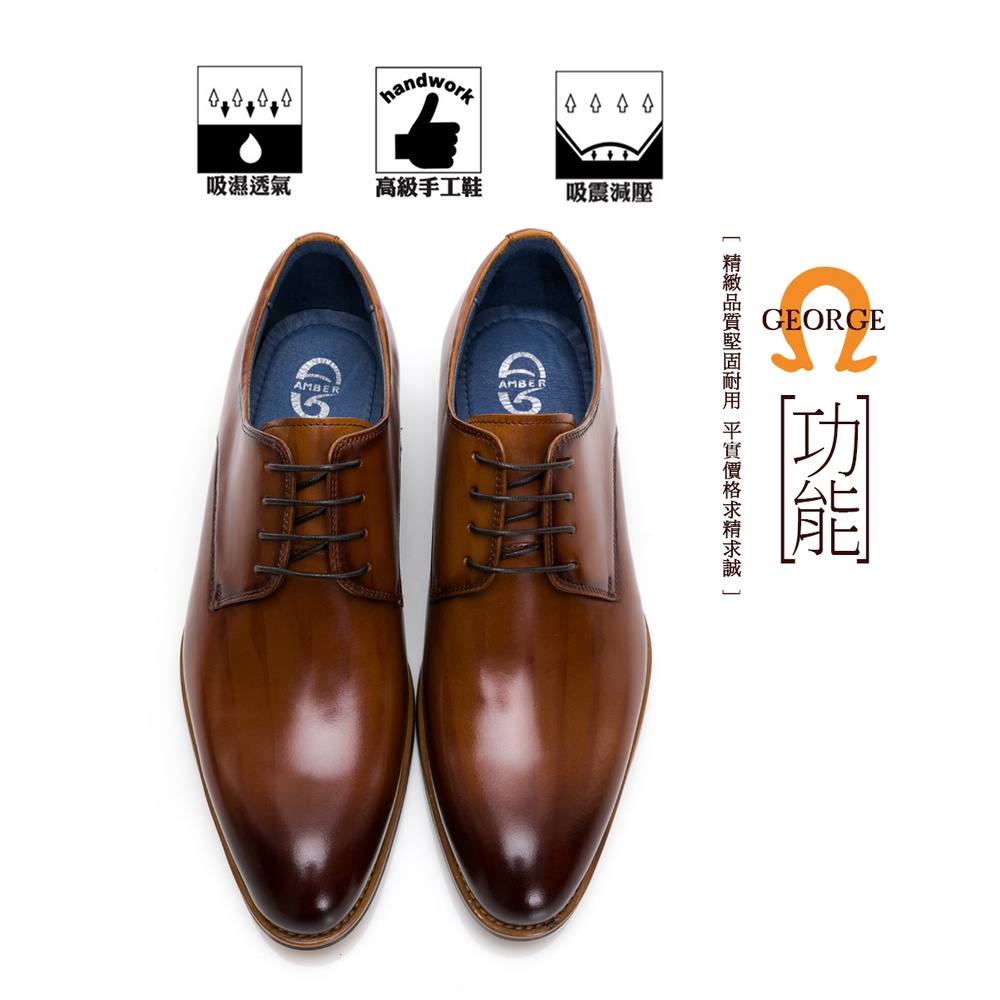 【GEORGE 喬治皮鞋】AMBER系列 亮面高質感真皮拉絲手工鞋 -棕 135003BR-24