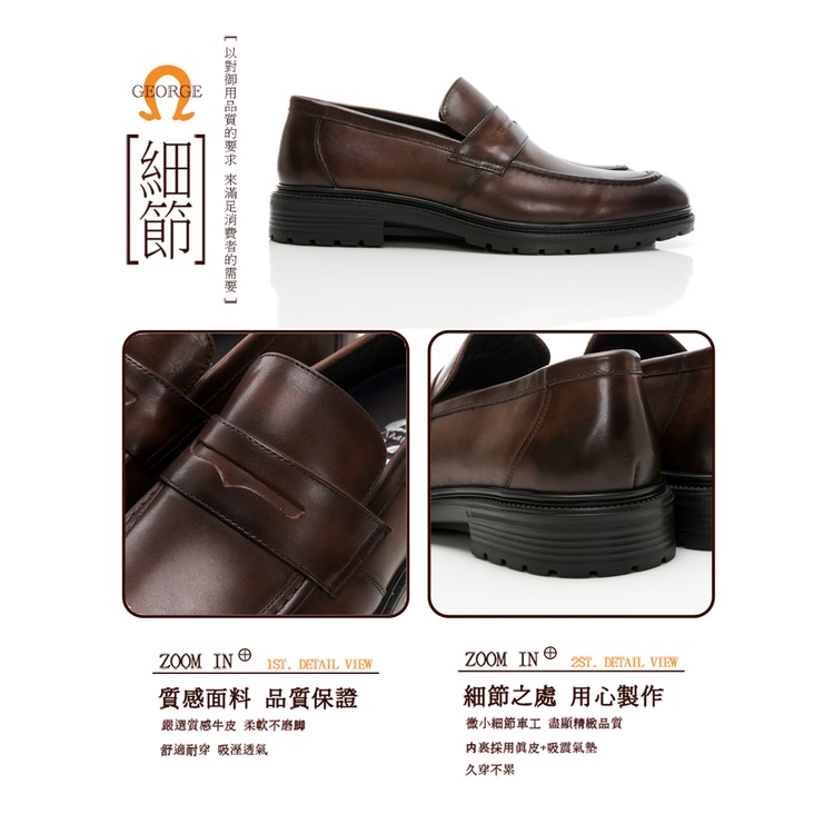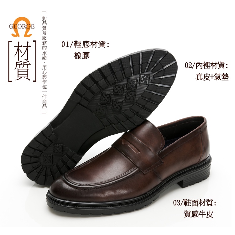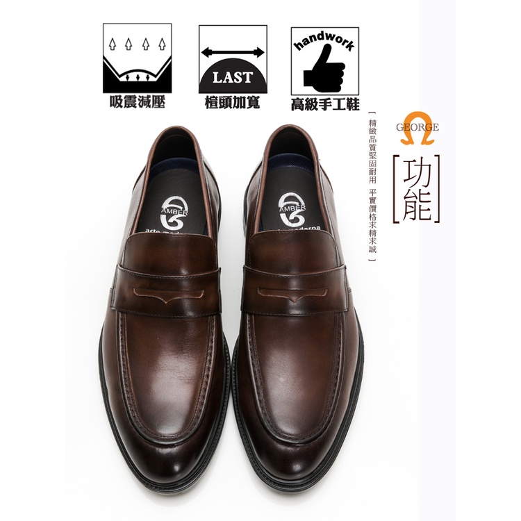 【GEORGE 喬治皮鞋】AMBER系列 微空調氣墊樂福皮鞋 -咖 215022CZ