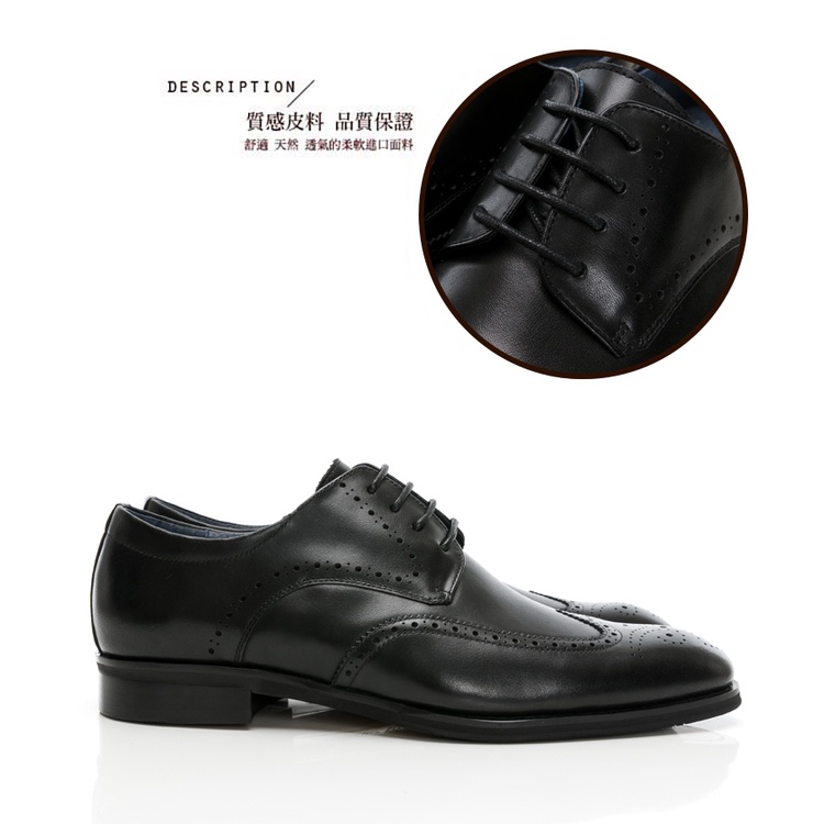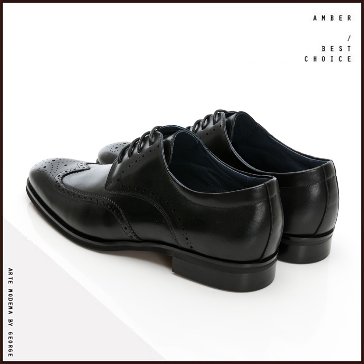 【GEORGE 喬治皮鞋】AMBER系列 職人通勤漸層擦色雕花德比鞋 -黑 135008CZ-10