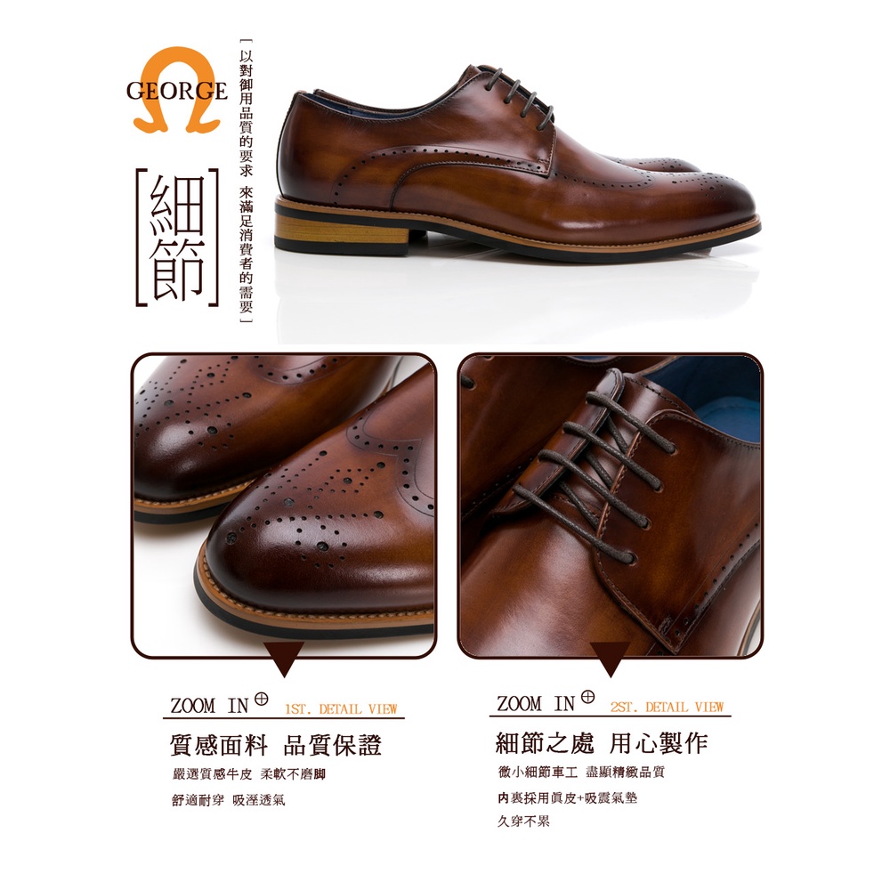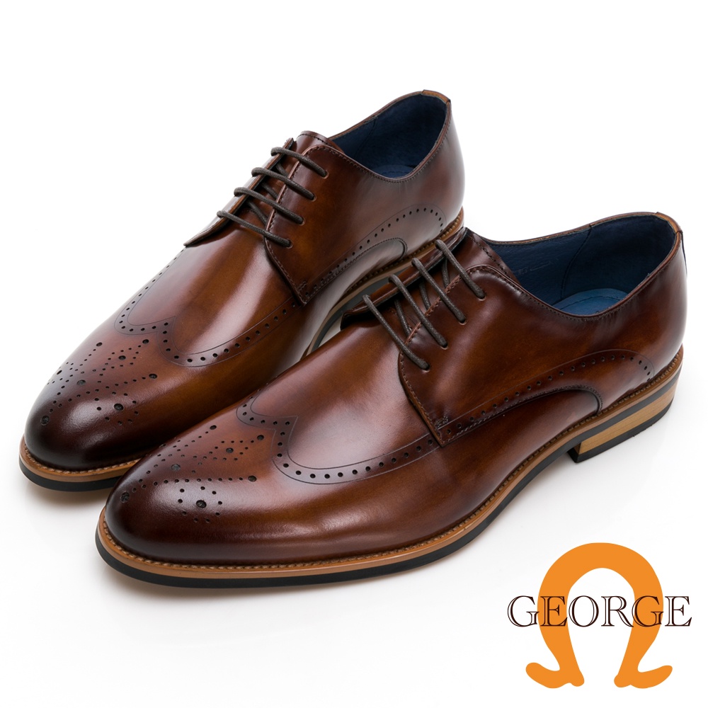 【GEORGE 喬治皮鞋】AMBER系列 亮面翼紋壓花真皮拉絲手工鞋 -棕 135004BR-24