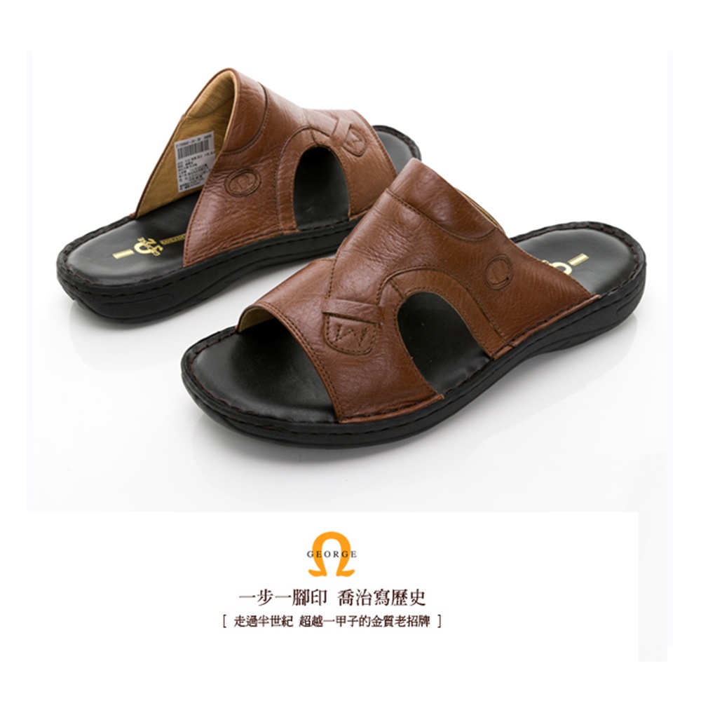 【GEORGE 喬治皮鞋】特大尺寸 手工縫製牛皮壓紋氣墊拖鞋 -棕色 017006AE-24