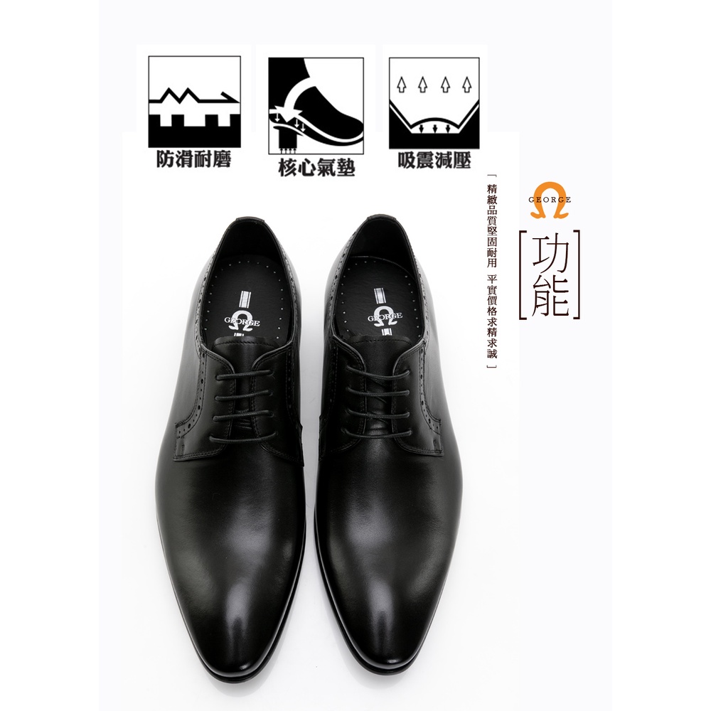 【GEORGE 喬治皮鞋】核心氣墊 素面真皮領口壓紋綁帶紳士鞋-黑 115005BW-10