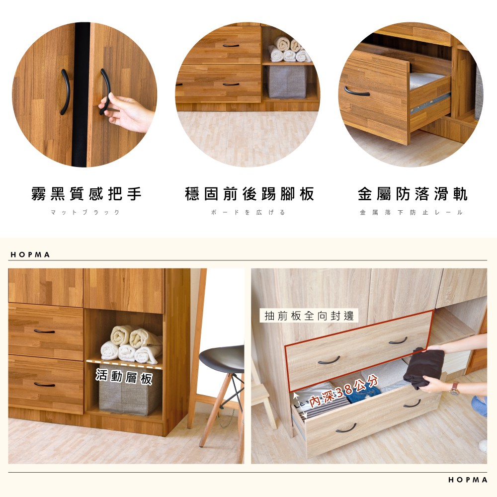 HOPMA美背工業風三門二抽二格衣櫃 台灣製造 衣櫥 抽屜櫃 衣物收納櫃A-397