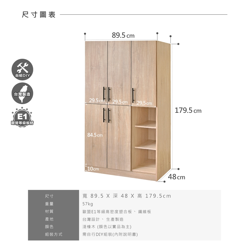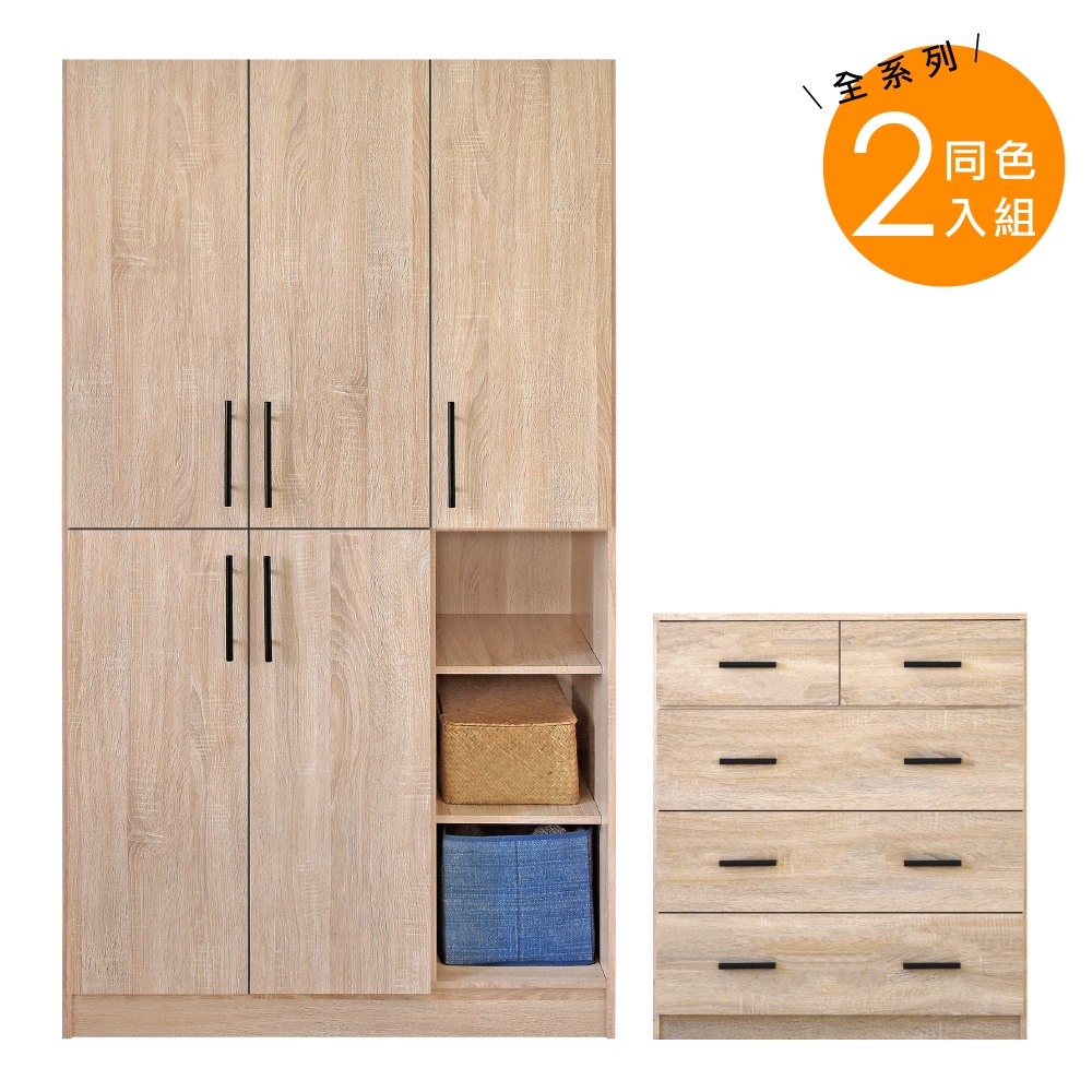 HOPMA 艾瑪五門開放三格衣斗櫃組合 台灣製造 衣櫥 收納櫃 置物櫃斗櫃A-553+B-C509