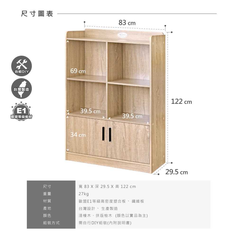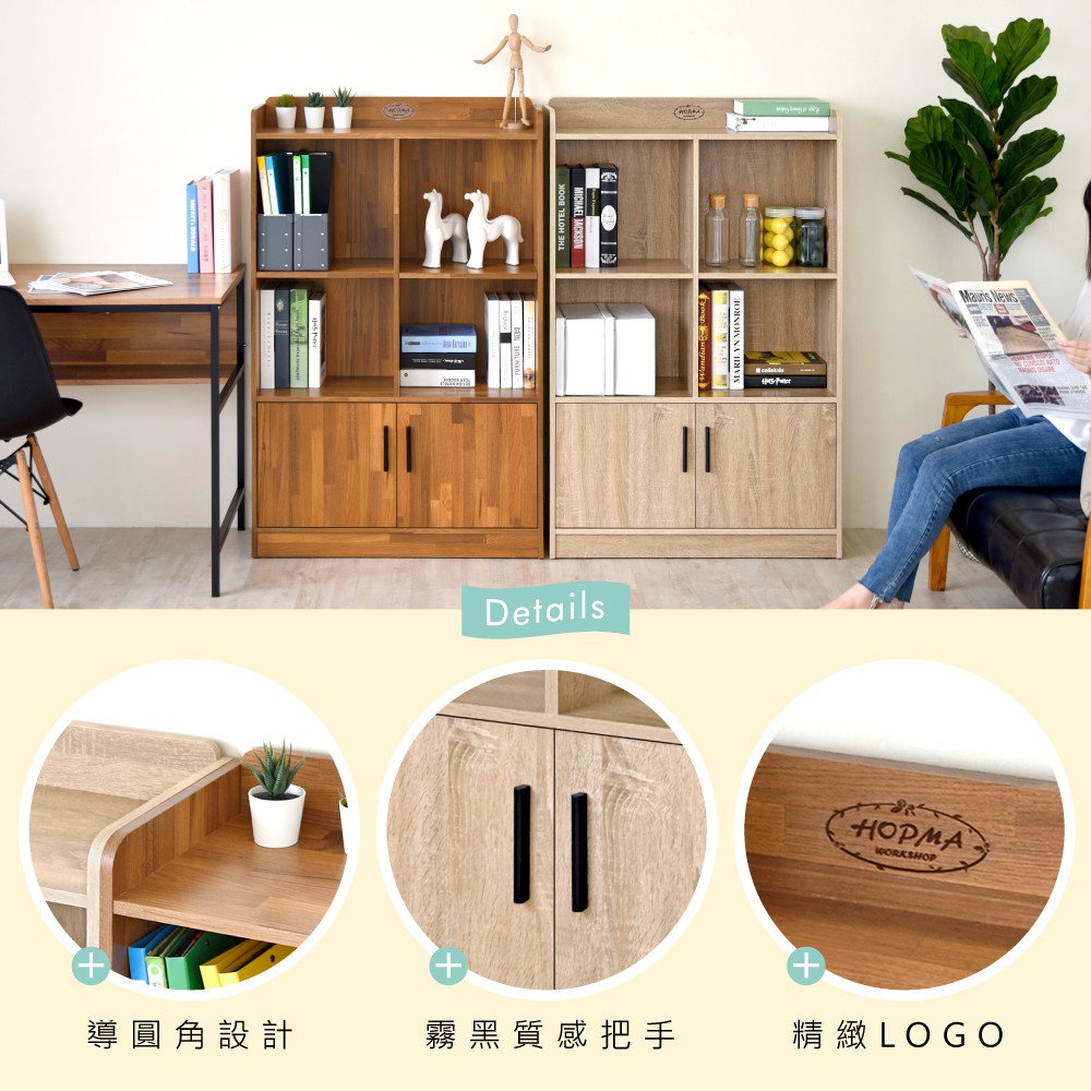 HOPMA工業風二門四格書櫃 台灣製造 層櫃 收納櫃 儲藏櫃 書櫃 置物櫃 玄關櫃 門櫃 書架G-2D800