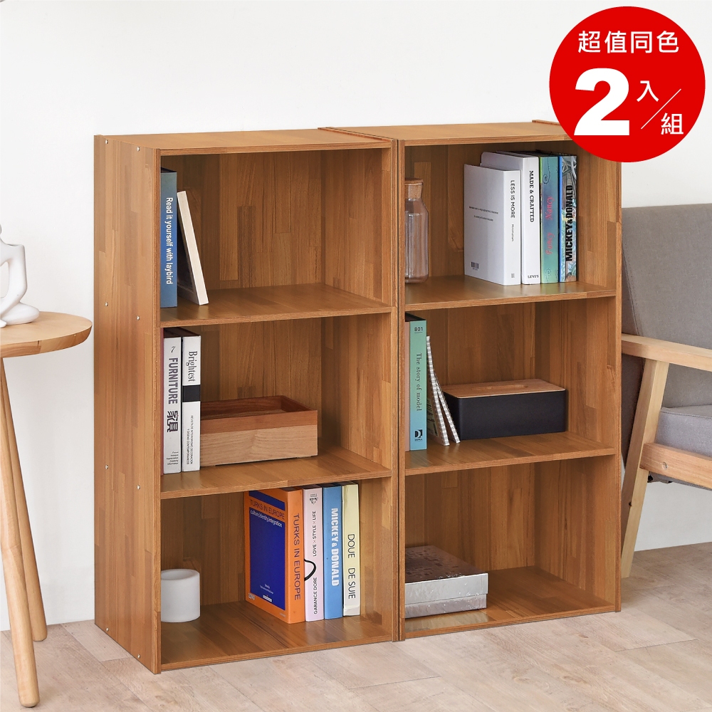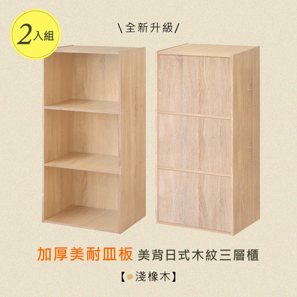 HOPMA日式木紋三層櫃(2入) 台灣製造 收納櫃 背板嵌入 玄關櫃 置物書櫃 三格櫃 展示空櫃G-309319329