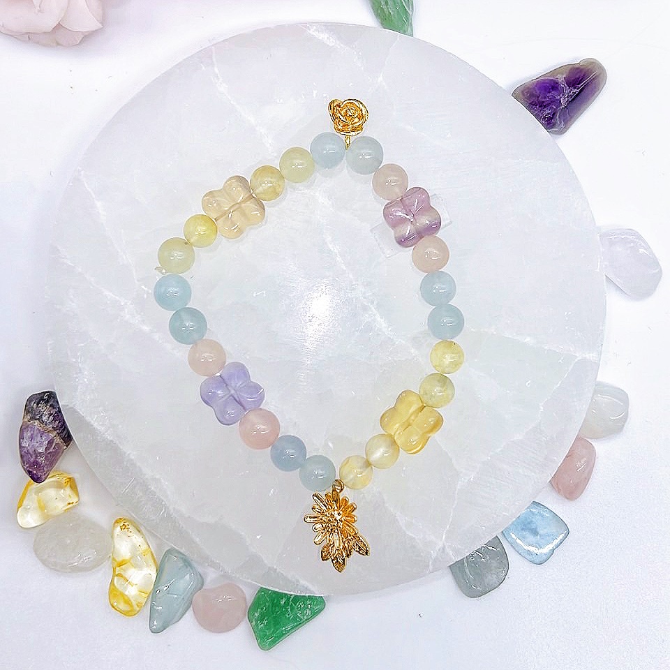 小伊水晶香氛莊園|水晶手鍊 |黃金花海|A14 黃螢石 紫螢石 檸檬水晶 海藍寶 粉晶