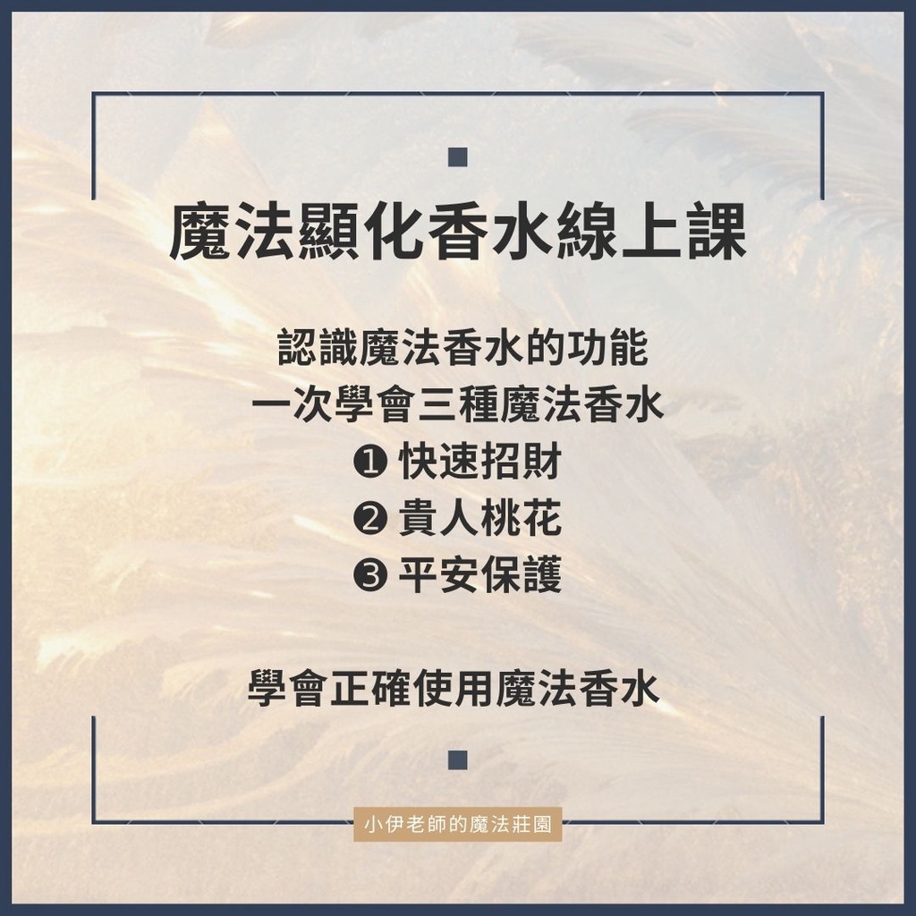 小伊水晶香氛莊園|魔法香水線上課程|C03 招財|桃花|平安|迅速顯化作用