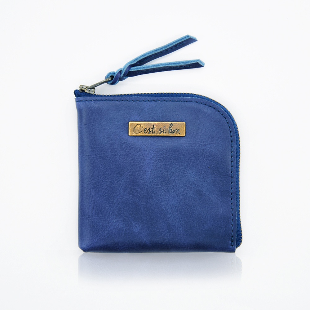 【散事舖】真皮L型拉鍊短夾/錢包(懷舊藍)簡約輕薄 L型大開口
