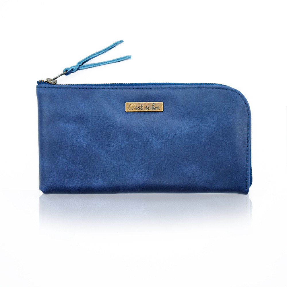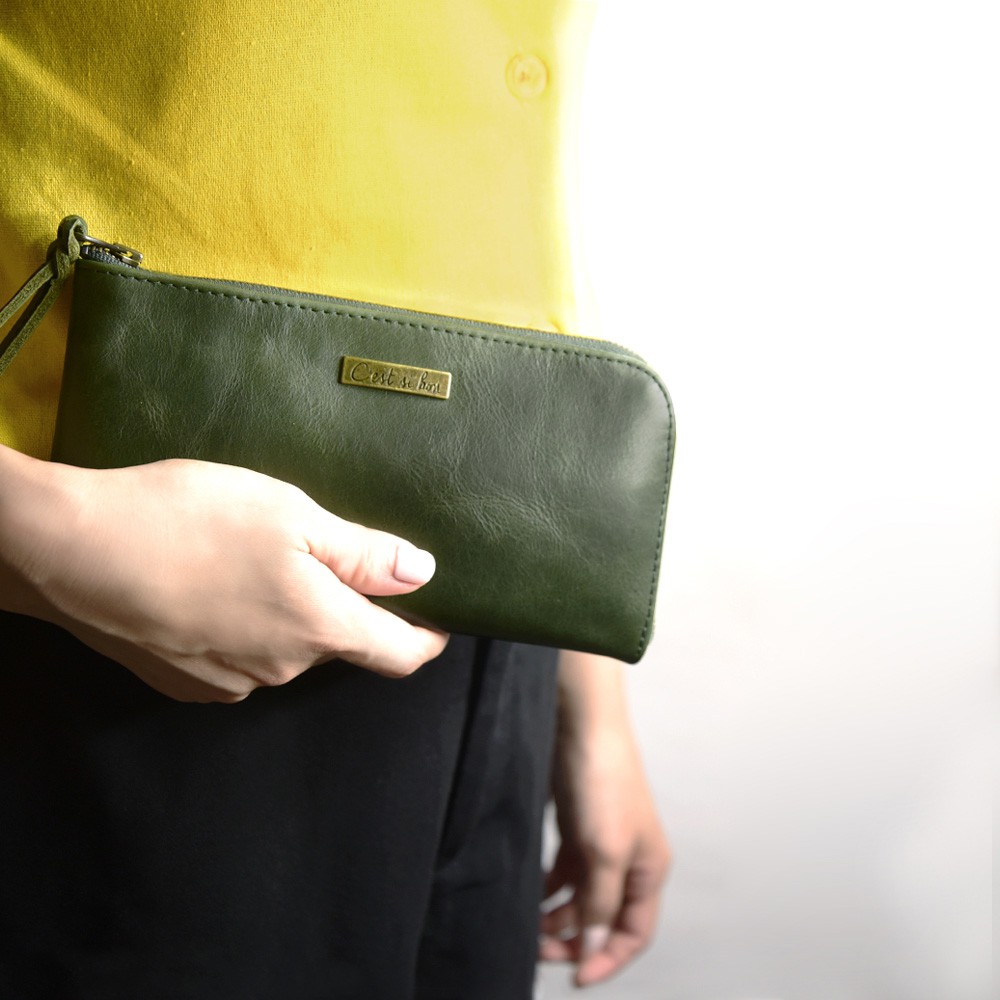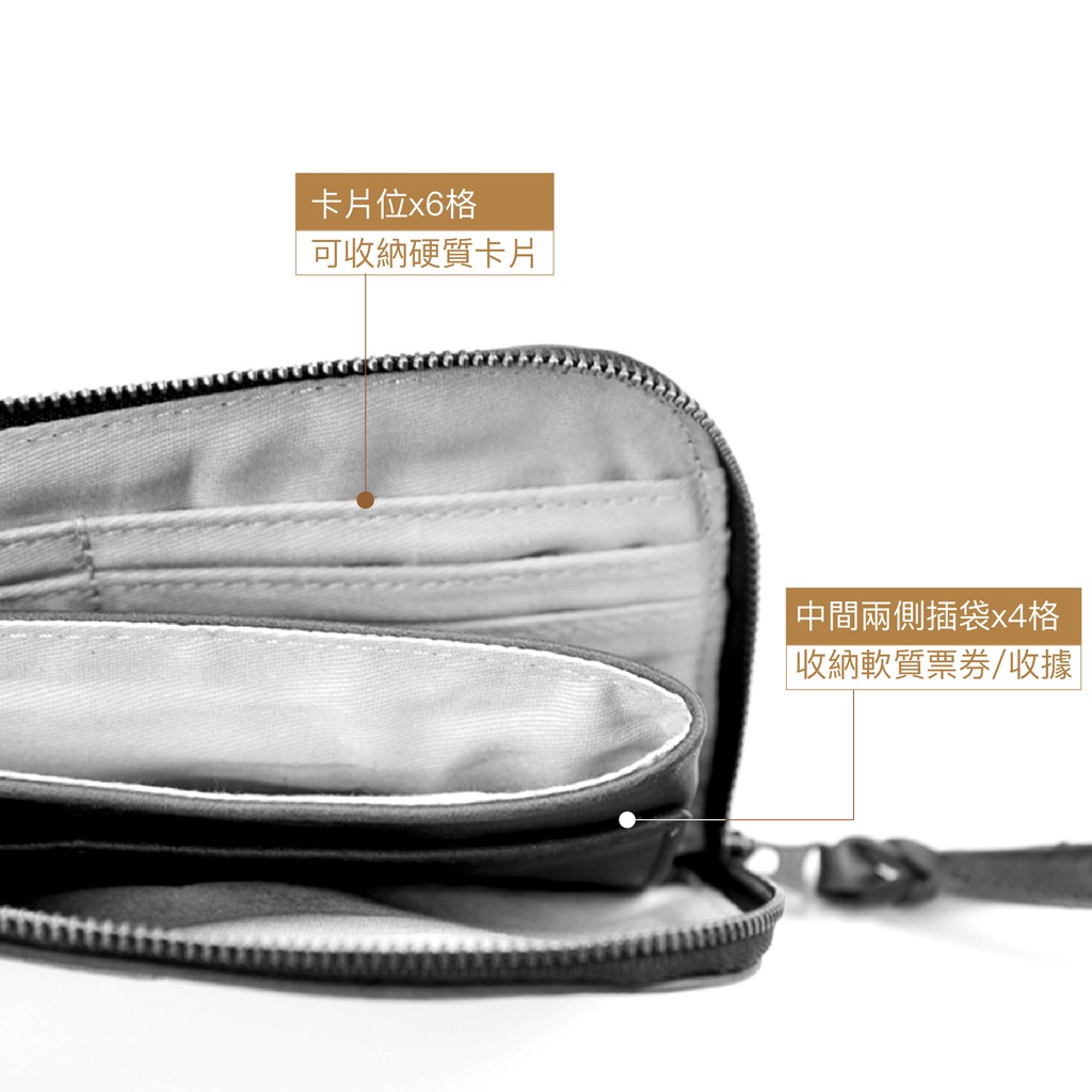 真皮製L型拉鍊長夾手拿包(5色)大開口分層卡位 禮物【散事舖】