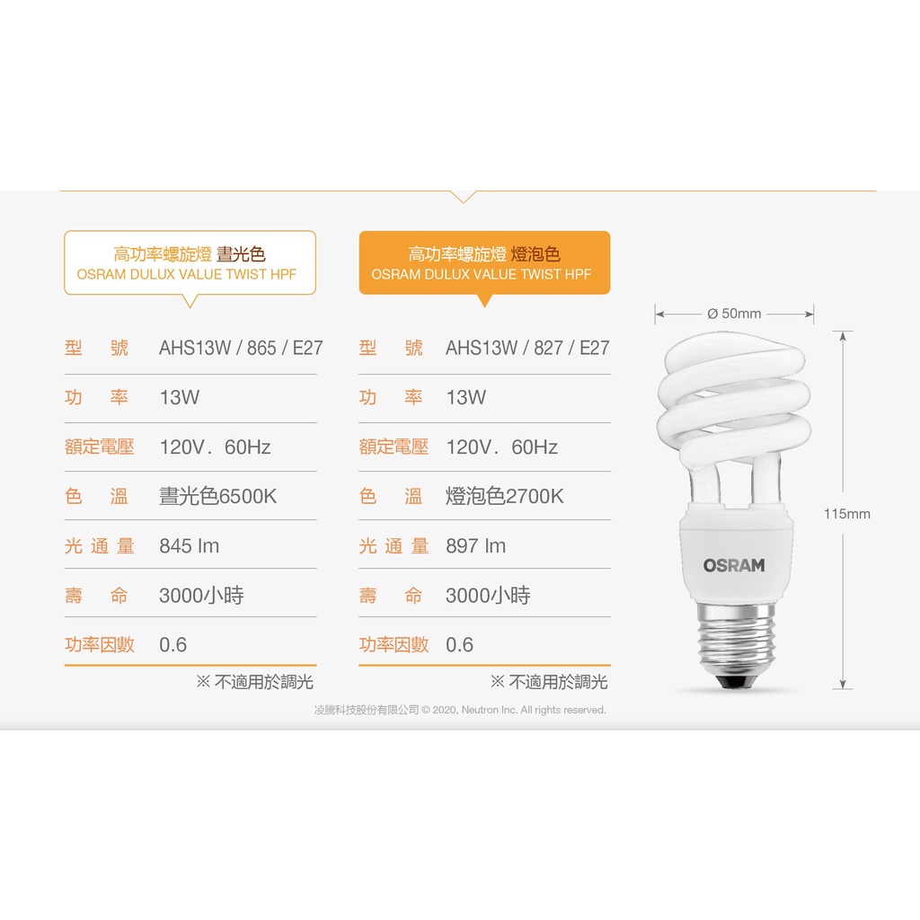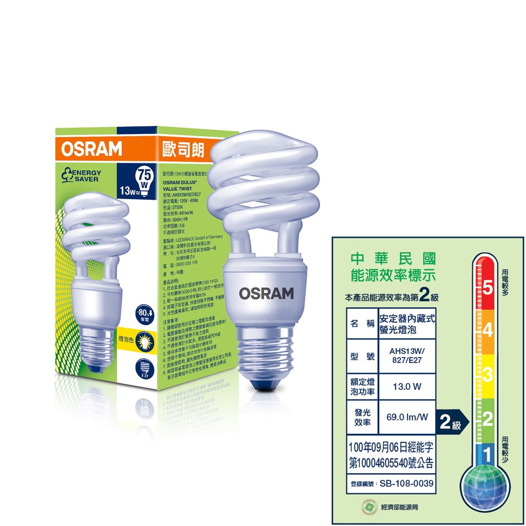OSRAM 歐司朗 13W省電螺旋燈泡_E27 120V 5入 黃光 官方直營店