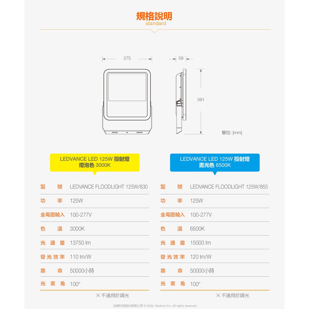 歐司朗/朗德萬斯 LED 125W 100-277V 投光燈 內含防水接線盒 白光 黃光 官方直營店