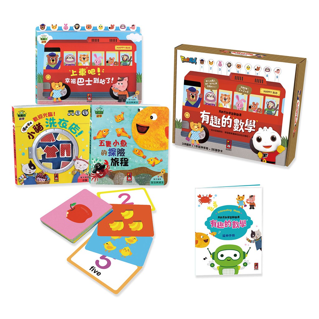 【風車圖書】有趣的數學翻翻書(上車吧!幸福巴士到站了!/歡迎光臨!小貓洗衣店!/五隻小魚的探險旅程)