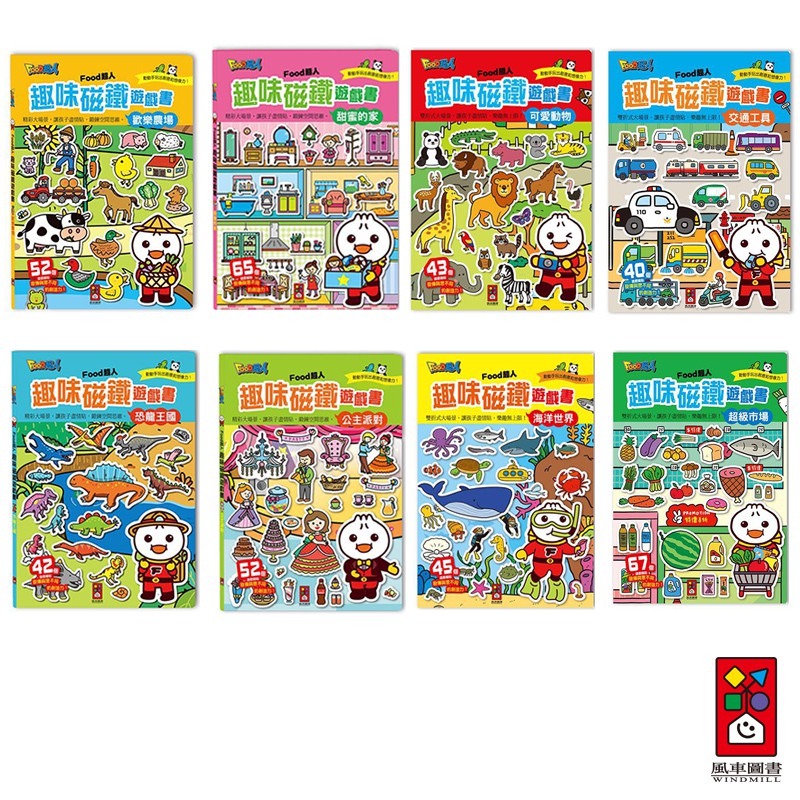 【風車圖書】FOOD超人趣味磁鐵遊戲書 (歡樂農場/恐龍王國/甜蜜的家/公主派對/可愛動物/交通工具/超級市場)