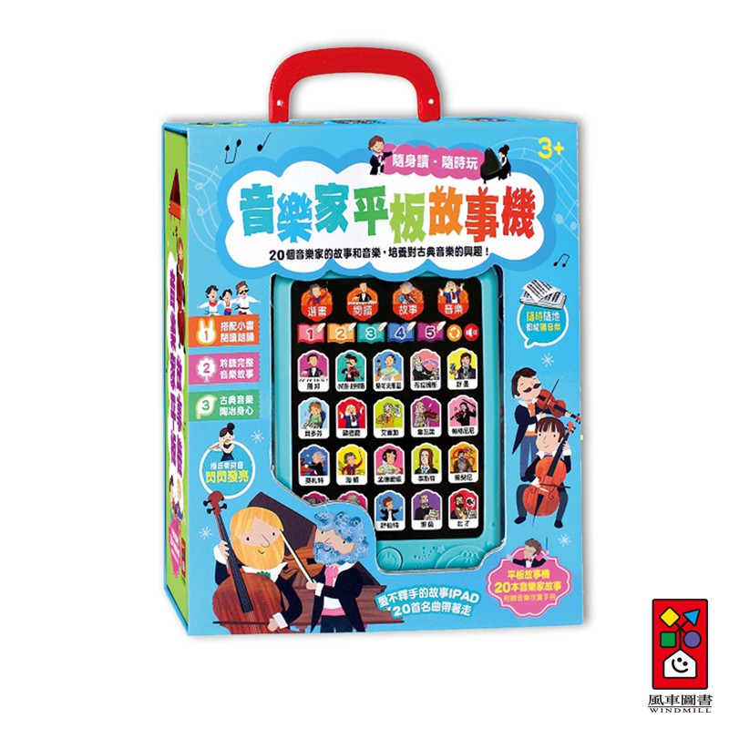 【風車圖書】音樂家平板故事機(單機)|平板故事 音樂 故事 有聲書 晚安故事 繪本故事機 安靜書 寶寶故事閱讀器 風車