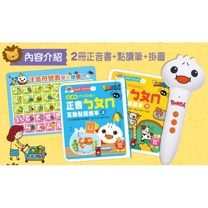 【風車圖書】正音ㄅㄆㄇ互動點讀繪本-FOOD超人|上下本 拼音 語詞 唐詩 遊戲|