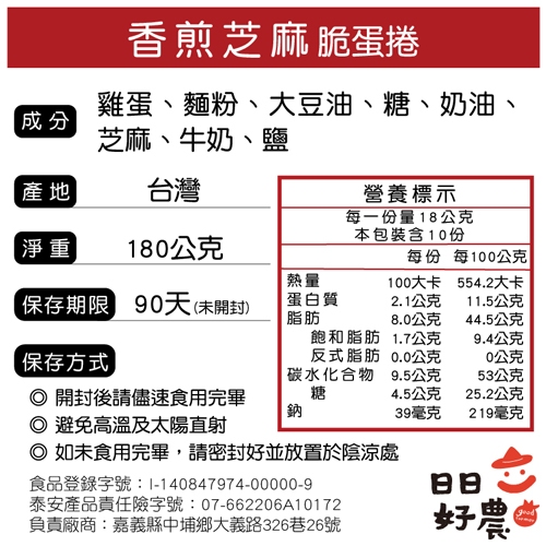 【日日好農】香煎芝麻脆蛋捲 一口蛋捲不掉屑 蛋奶素可食 嘉義伴手禮 肉鬆蛋捲 芝麻蛋捲 黑糖蛋捲 鳳凰捲