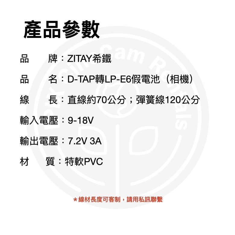 希鐵 ZITAY D-TAP 轉 LPE6 假電池 for相機 直線DT48 彈簧線DT20 現貨 鏡花園