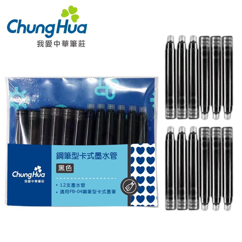 【中華筆莊】60 中華鋼筆型卡式墨水管 黑色12入 - 另有專用墨筆〈官方直營店〉台灣品牌 FB-06
