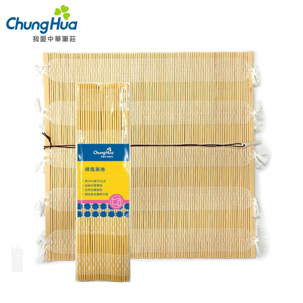 【中華筆莊】W-001-1 禪風筆捲 - 白色 (原竹色) 29x29cm 收納攜帶毛筆 畫筆