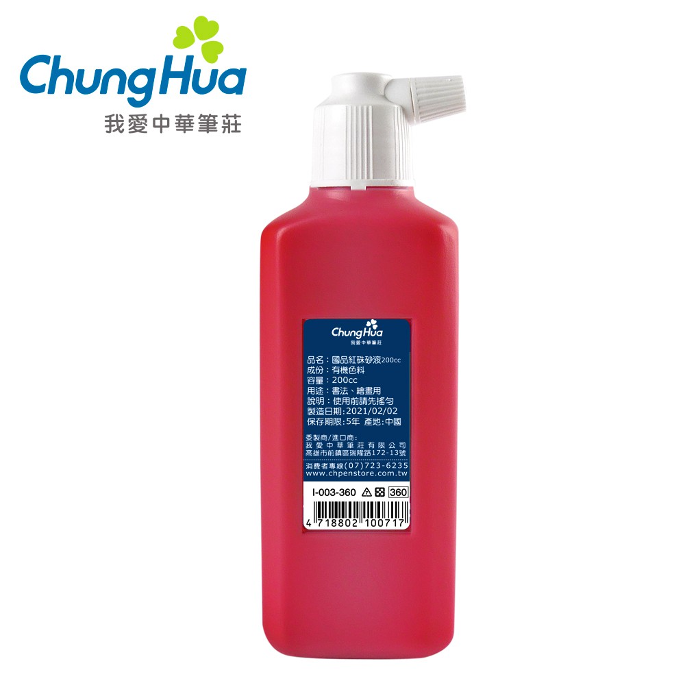 【中華筆莊】360 國品紅硃砂液 (中) 200cc 紅色墨汁 - 台灣品牌 I-003-360〈官方直營店〉