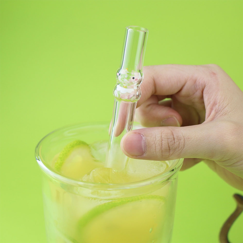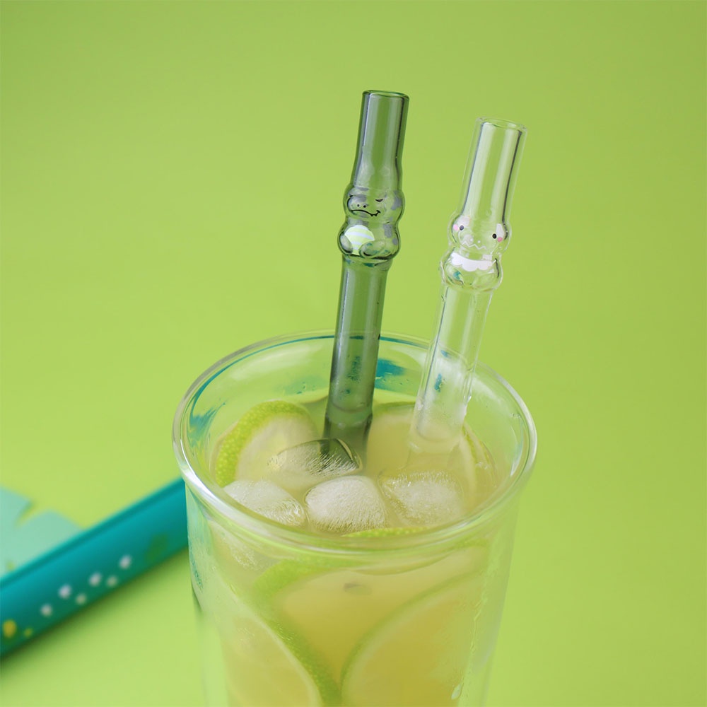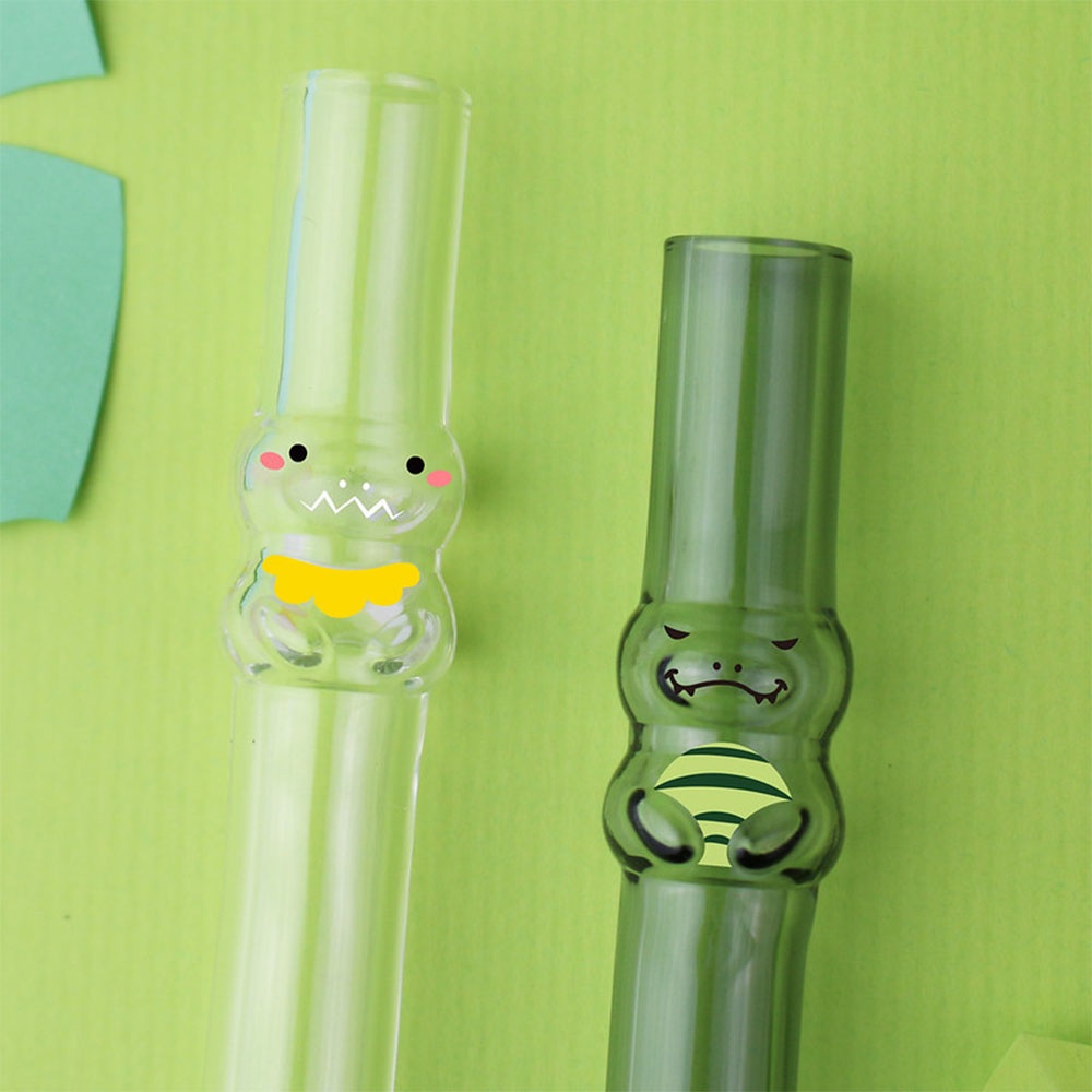 【好玻GOODGLAS】Dino Girl恐龍造型玻璃吸管-清透(附吸管刷&收納套)|環保吸管